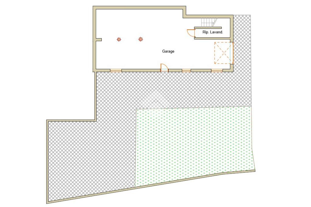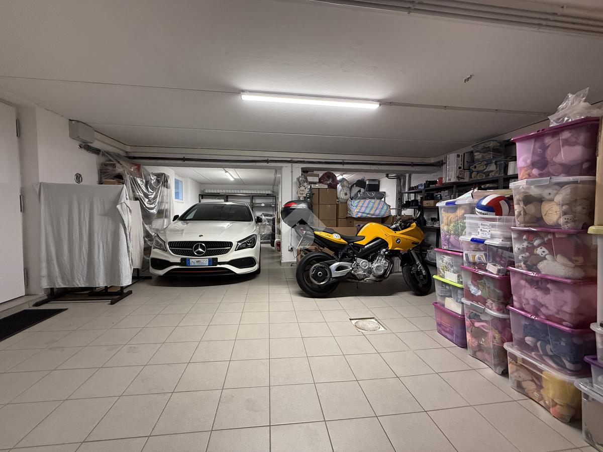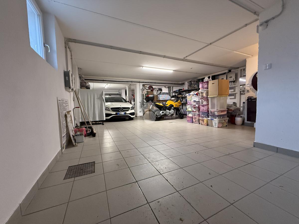 Piano seminterrato: imponente garage finestrato, servito da basculante elettrico e da portoncino blindato. Lo spazio, grazie alle dimensioni generose, si presta non solo al ricovero di più veicoli ma anche come deposito, laboratorio o futura taverna con cucina e camino. Sullo stesso livello sono presenti un locale lavanderia e la scala interna che conduce agli appartamenti superiori.