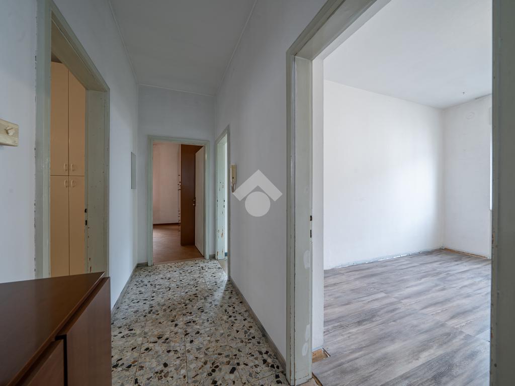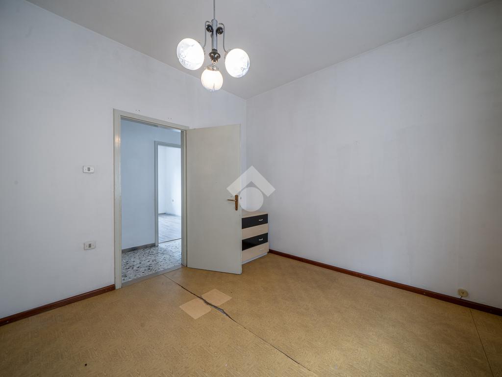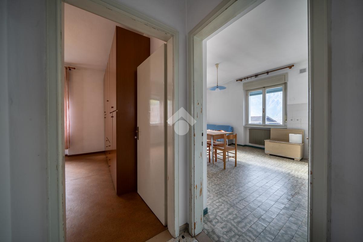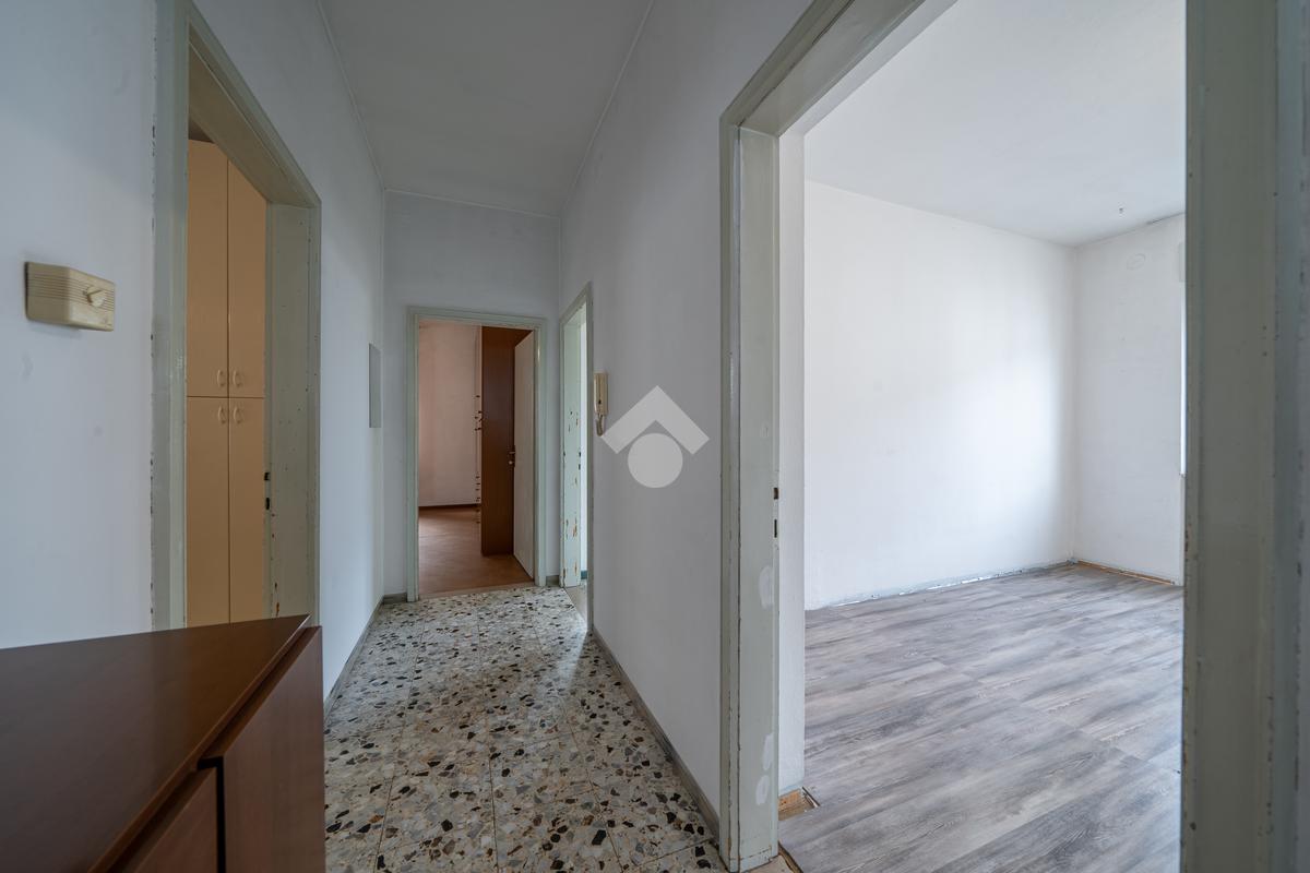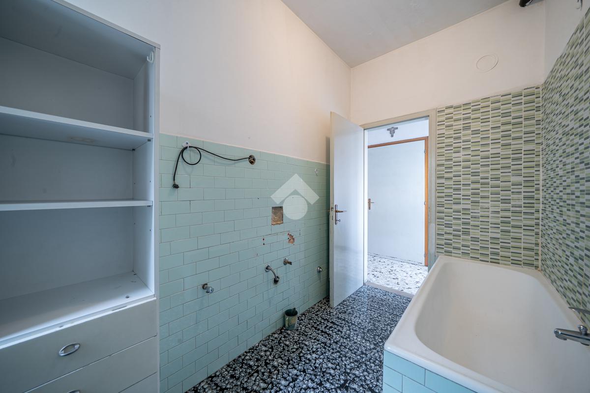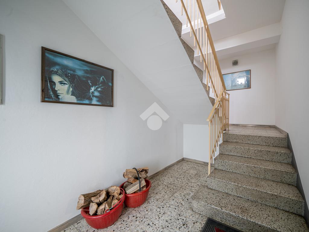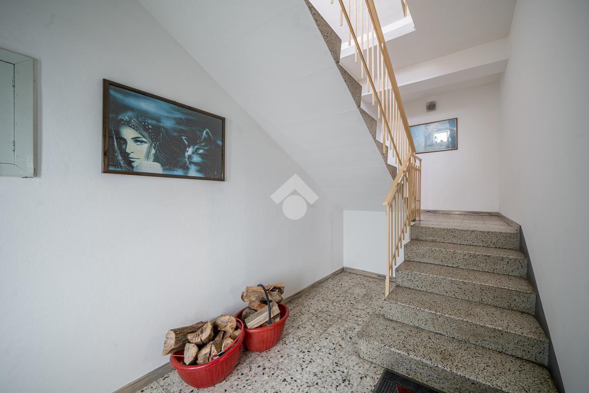 Tramite scala interna si accede alle unità immobiliari composte da due appartamenti: al primo piano troviamo una soluzione da risanare composta da zona giorno in open-Space con accesso diretto al balcone angolare esposto a sud-ovest, due camere matrimoniali, camera doppia, ripostiglio e bagno finestrato dotato di vasca.