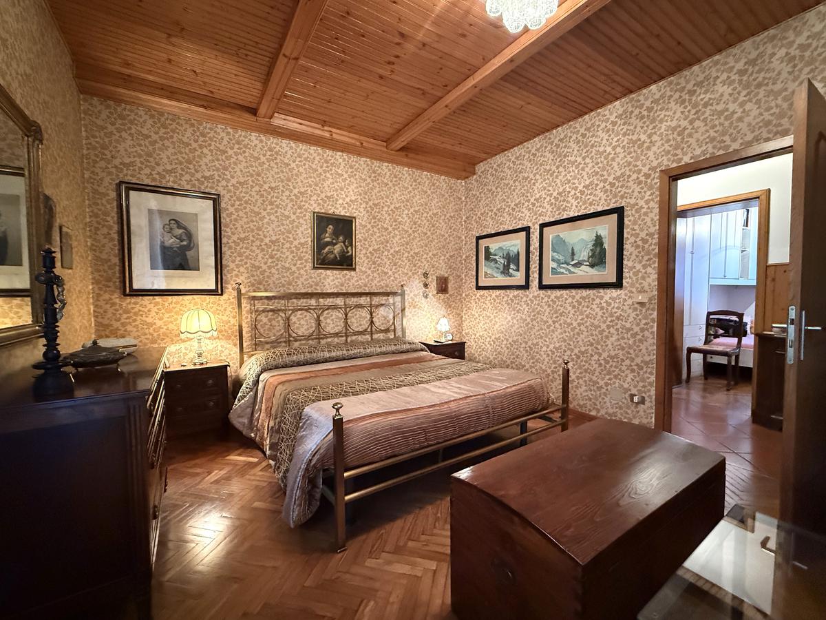 Tramite corridoio con soffitto perlinato si accede alla zona notte composta da 3 camere da letto, riportiglio e bagno finestrato dotato di box doccia e vasca, ideale per chi cerca comfort e praticità.