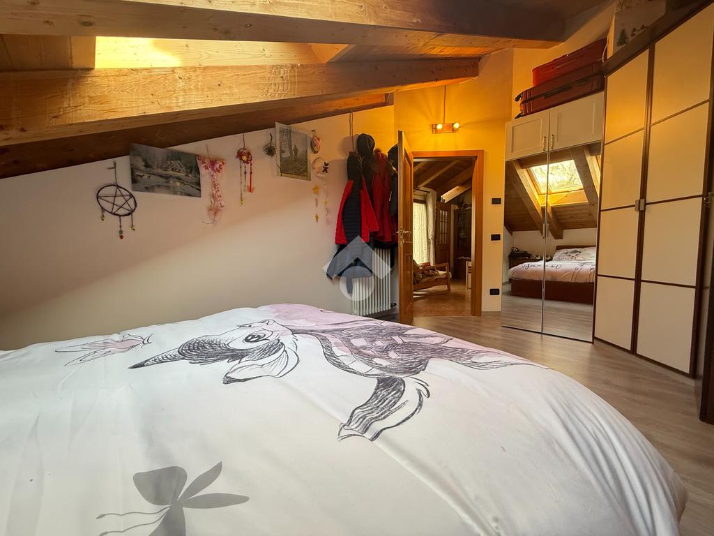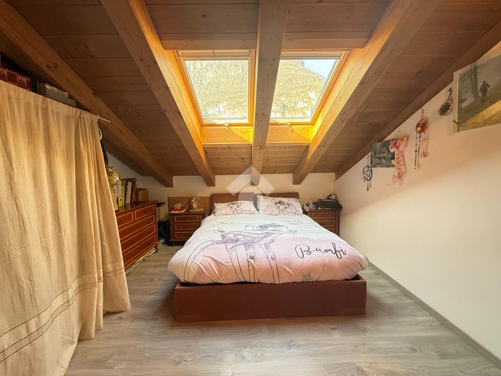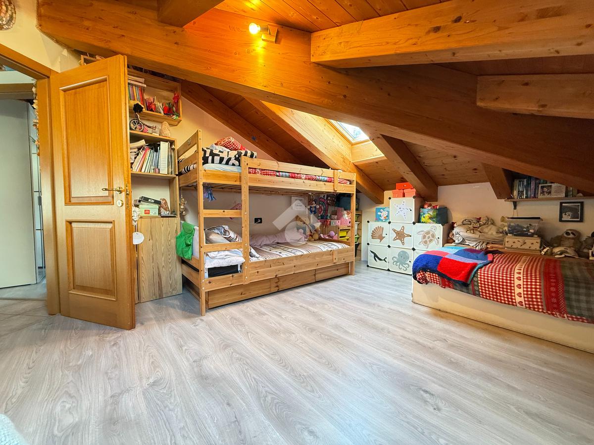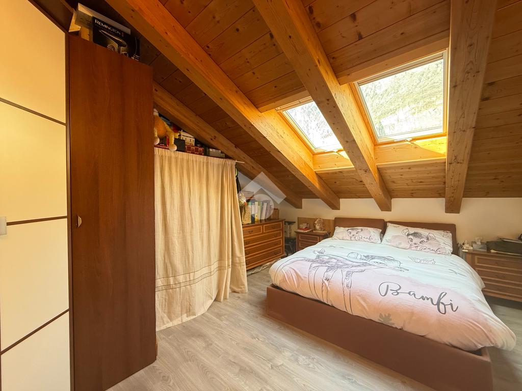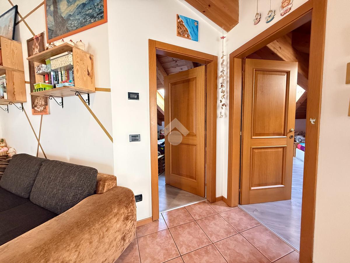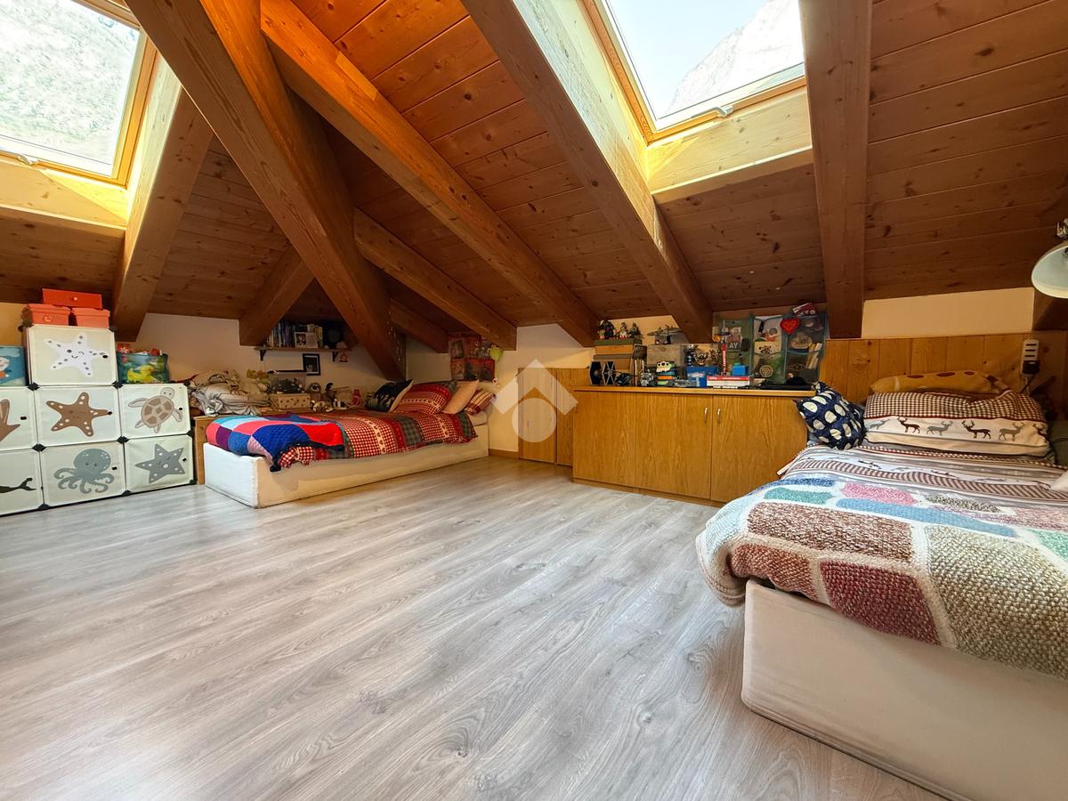 Roveré della Luna - Nel centro del paese si propone in vendita un accogliente appartamento quadrilocale mansardato con travi a vista di 132 mq esposto su tre lati situato al quarto piano con ascensore di un edificio storico ristrutturato a fine anni novanta.
