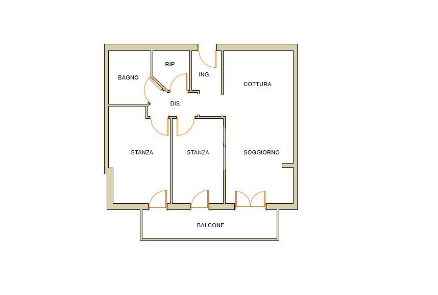 Tramite porta blindata si accede all'atrio d'ingresso che ci conduce alla zona giorno in open-Space con annesso balcone esterno esposto ad Ovest.